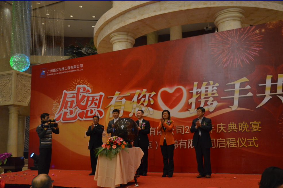 2013年12月27日,以“感恩有您,携手共赢”为主题的广州嘉立电梯工程有限公司成立20周年庆典暨中联迅杰(北京)电梯有限公司启动仪式在广州地中海酒店胜利召开。出席会议的有:中景恒基集团董事长肖厚忠、中联迅杰(北京)电梯有限公司董事长李雅鸿、中联迅杰(北京)电梯有限公司董事王大庆、辛建国、北京实创电梯工程有限公司总经理吴少辉、成都吉高电梯工程有限公司董事长李小川、石家庄上菱电梯工程有限公司总经理吴文海、青岛永通电梯工程有限公司总经理宋永光及部分长期合作的客户及供应商代表等共计300多人。