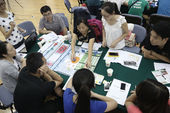 公司团队及架构建立后,汪老师通过引领员工进入一个模拟的竞争性行业,围绕形象直观的沙盘教具,实战演练模拟企业的经营管理与市场竞争。由年初支付所得税、做新一年计划、广告方案制定、更新短贷、更新应付款,到开始新的生产、交付订单、市场开发,以及年底支付设备维修款、折旧、支付租金或购买设备厂房、年底结账等等的一系列操作,强化学员的管理知识和技能,在 经历模拟企业5年的荣辱成败过程中提高战略管理能力,感悟经营决策的真谛。