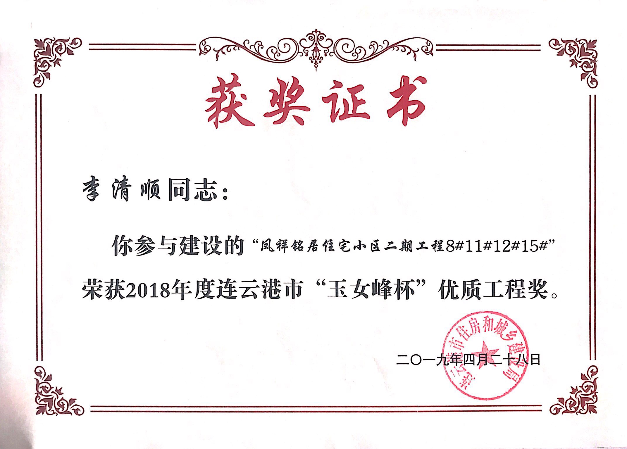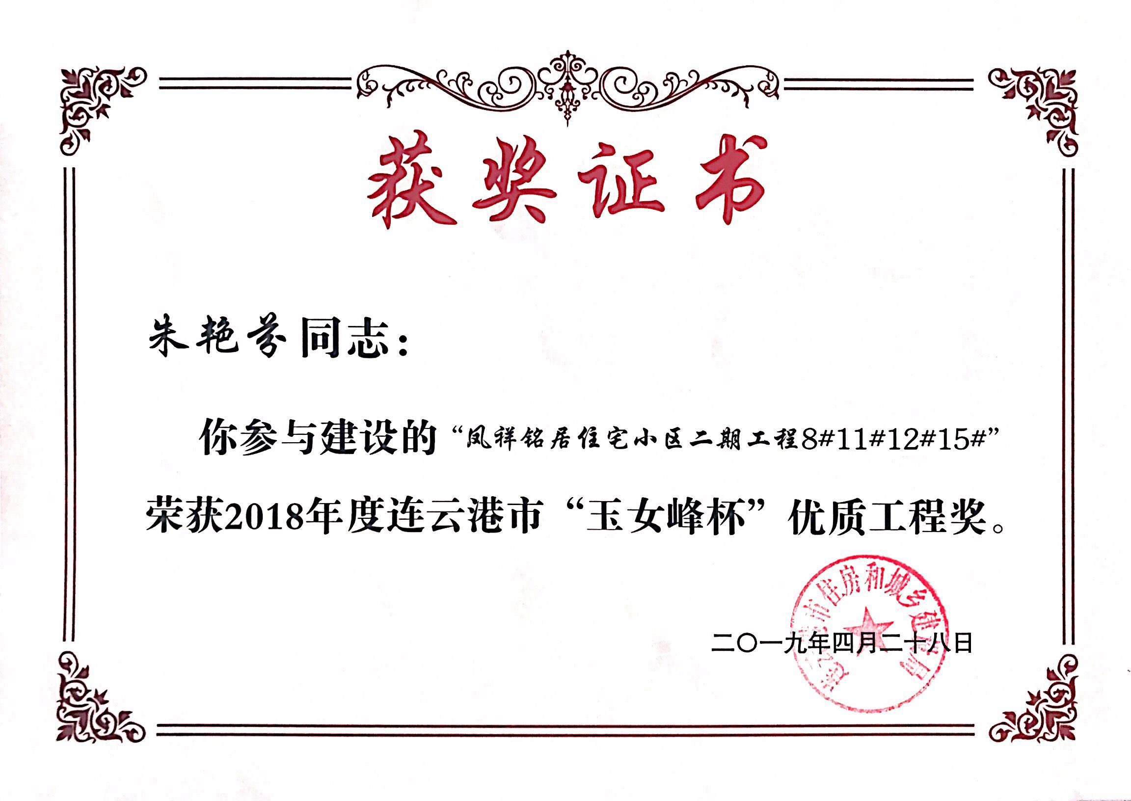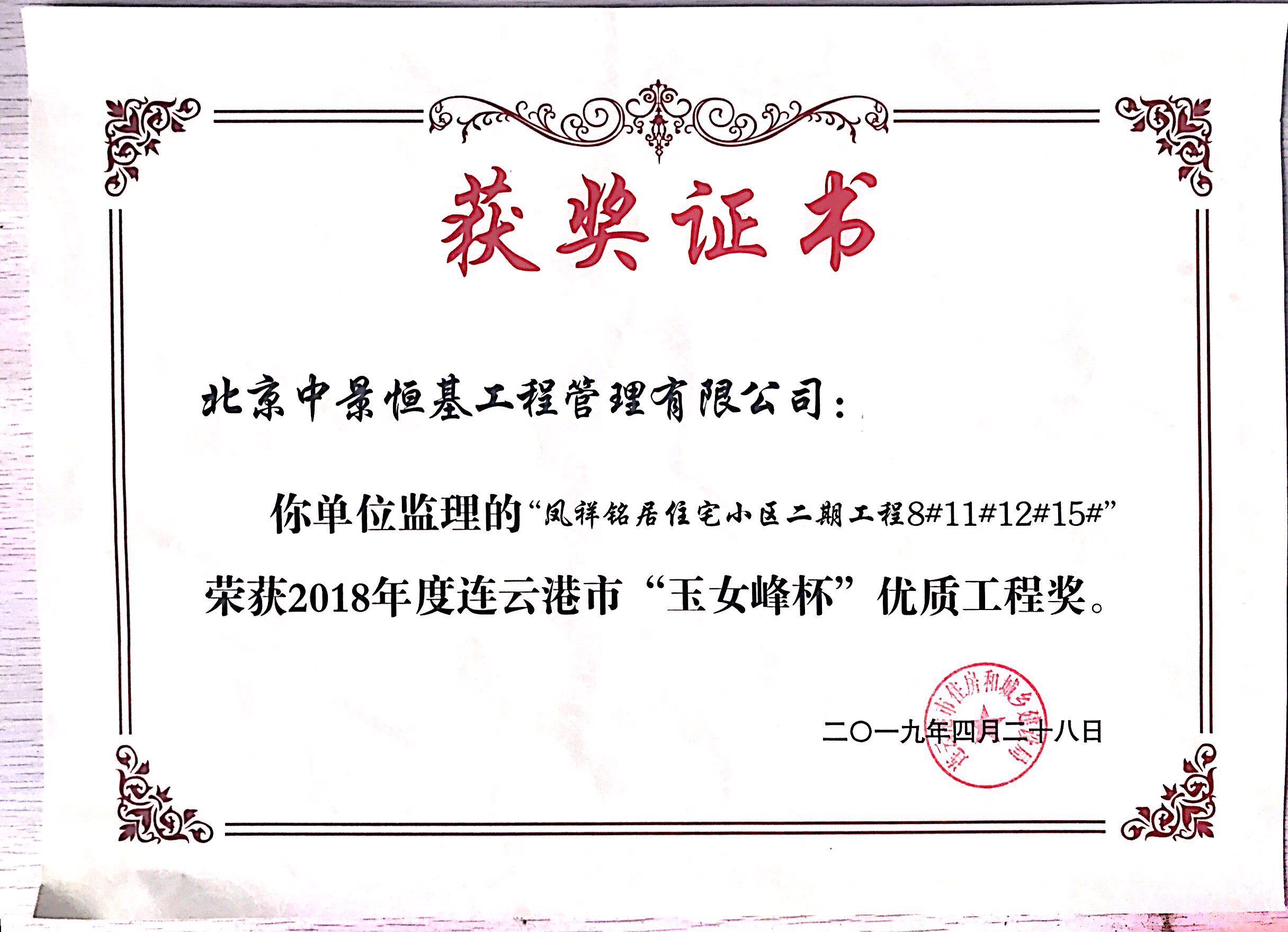 本次玉女峰杯的获得又一次体现了连云港市凤祥铭居房地产开发有限公司一直以来深耕港城地产行业的决心和凤祥铭居人对工程质量精益求精的优良传统。凤祥铭居公司会以此次获奖为契机,不忘初心,为港城人民呈现更多精品工程。