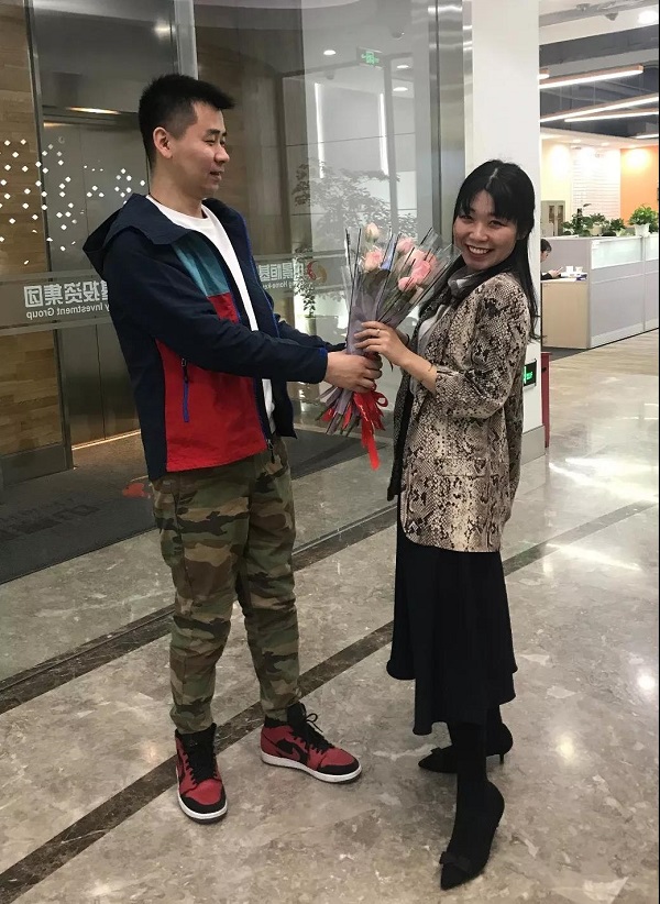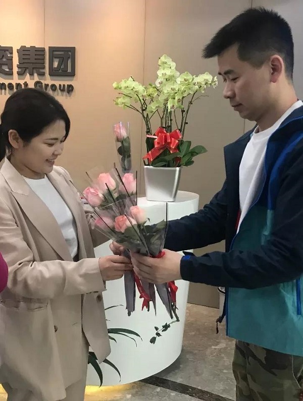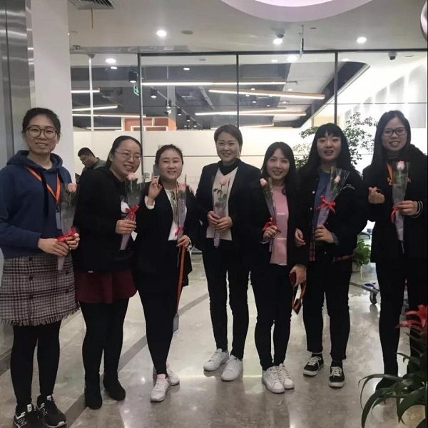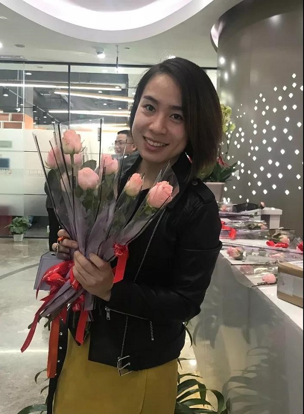 收到祝福的女同事脸上洋溢着幸福的笑容。为了祝福女同事,男同事们也积极做起了送花使者,为女同事们送上衷心的祝福。